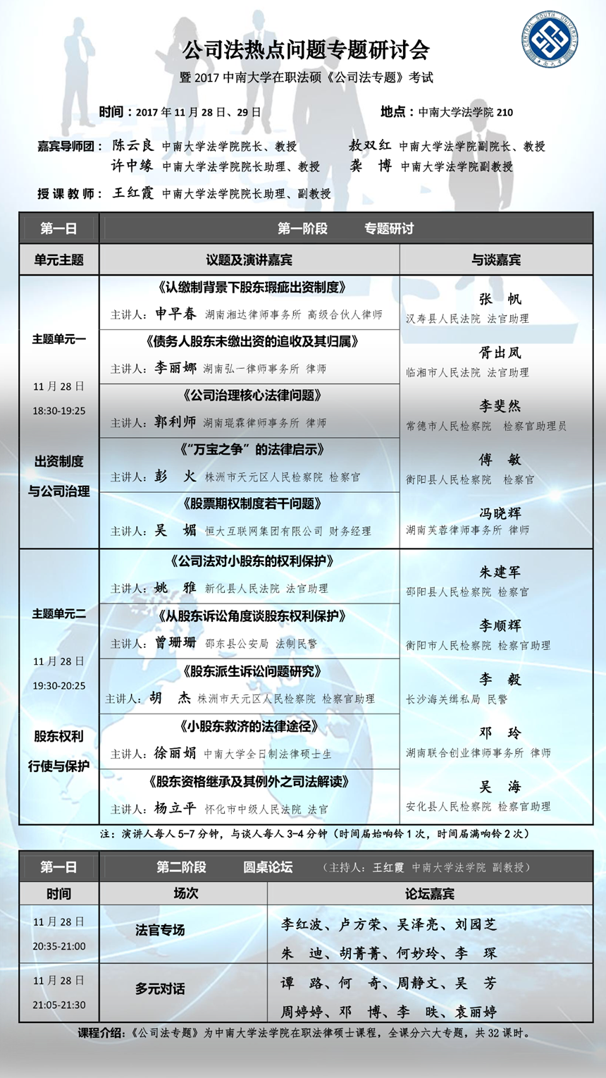 【研讨会】公司法热点问题专题研讨会暨2017在职法硕《公司法专题》考试