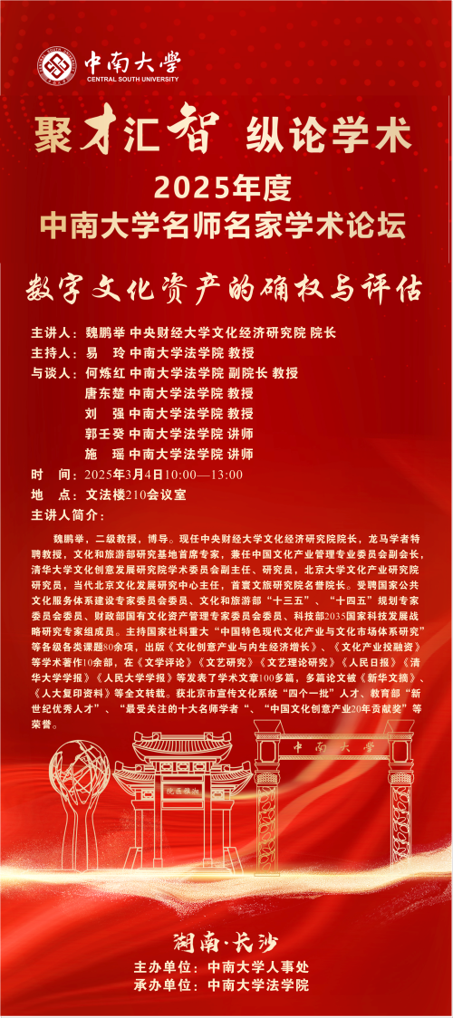 【讲座预告】魏鹏举:数字文化资产的确权与评估