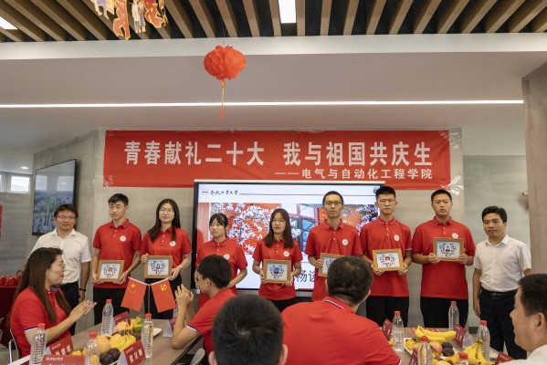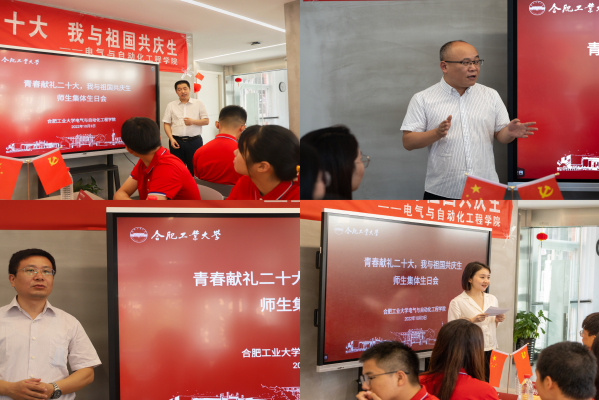 在教师代表谈理想奉献环节,阚超豪老师谈到今天我们师生以特殊形式喜迎党的二十大,致敬我们伟大的祖国,希望同学们能够不忘初心,砥砺奋斗,努力为祖国的建设添砖加瓦。陈波老师分享道,老一辈科技工者在艰苦环境下为祖国建设发展呕心沥血,奠定了强国之基,希望同学们立大志、存高远、健身心、共成长,接好新时代接力棒,努力学习成长成才,为祖国科技发展贡献我们电气人的力量!姜卫东教授就实践的意义与同学们进行分享。希望同学们不在乎今后做什么,从事什么职业,关键在于要做对社会有用的人,能为人民服务的人,能积极投身中国特色社会主义建设的人;希望同学们积极参加社会实践,从实践中理解祖国发生的巨大变化,做到与祖国同呼吸,共命运。学院学生工作办公室副主任左能老师谈到,党和国家的期待、学生成长成才的信任是我们辅导员砥砺前行的不竭动力,在今后“平凡”的一生中,将继续用点滴行动追随“英雄梦想”,用爱联接辅导员的育人梦和学生的成才梦,用青春报效祖国,为伟大中国梦的实现贡献力量!
