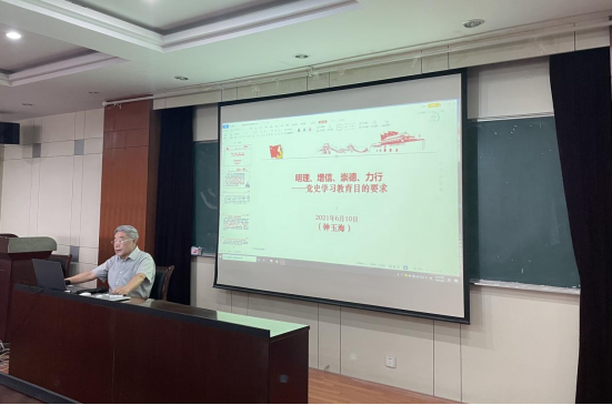 为贯彻落实学校党委关于深入推进党史学习教育的工作要求,6月9日下午,beat365在线唯一官网邀请钟玉海教授在逸夫楼1117室为学院全体教工党员作党史学习教育专题辅导报告,题为明理、增信、崇德、力行——党史学习教育目的要求。学院党委书记何岳颀主持报告会。