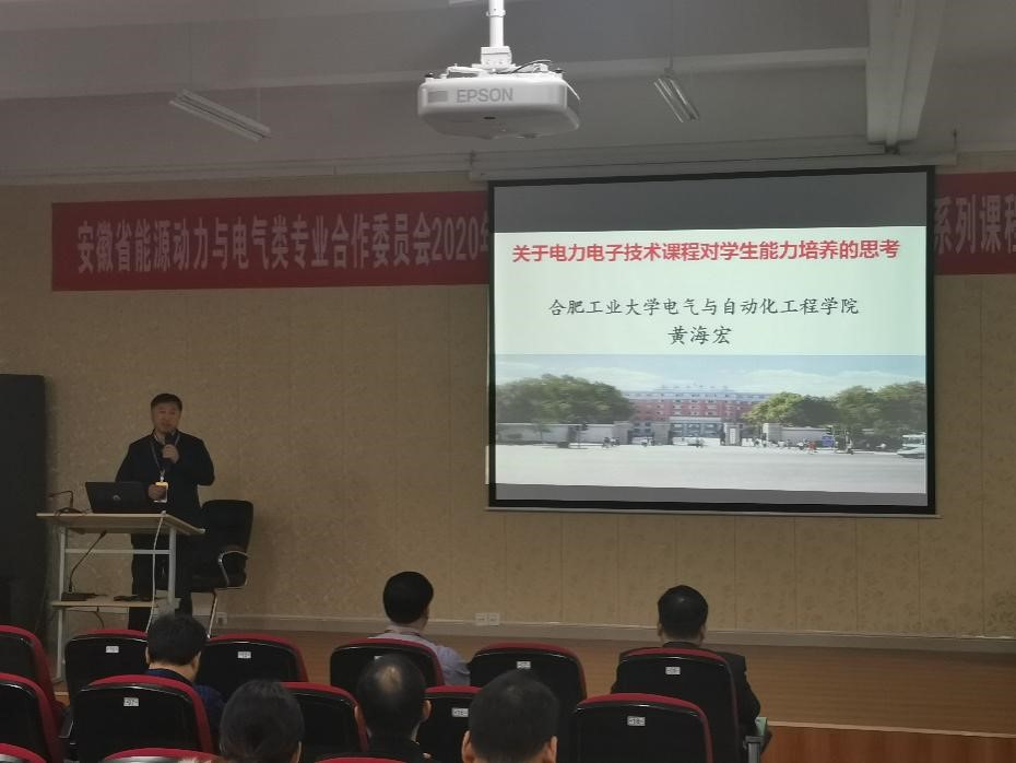 会议开幕式,beat365在线唯一官网副院长黄海宏教授代表beat365官网进行发言,欢迎参加会议的各位领导和老师并感谢全省兄弟高校对会议的支持。随后,在专题报告环节,beat365官网张兴教授分享了光伏发电领域最新行业动态和前沿技术,展现了电力电子技术对社会进步的贡献;黄海宏副院长作了题为“关于电力电子技术课程对学生能力培养的思考”的报告,介绍了beat365官网电力电子课程组在“电力电子技术”课程中使用的目的型教学方法。