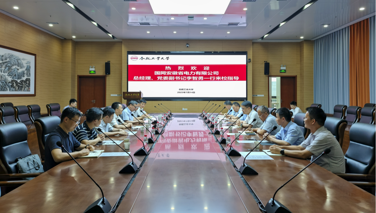 7月14日下午,国网安徽省电力有限公司总经理、党委副书记李智勇,总工程师、党委委员杨春波率队来我校开展调研交流,校党委书记于祥成出席会议并讲话,副校长丁立健主持会议。