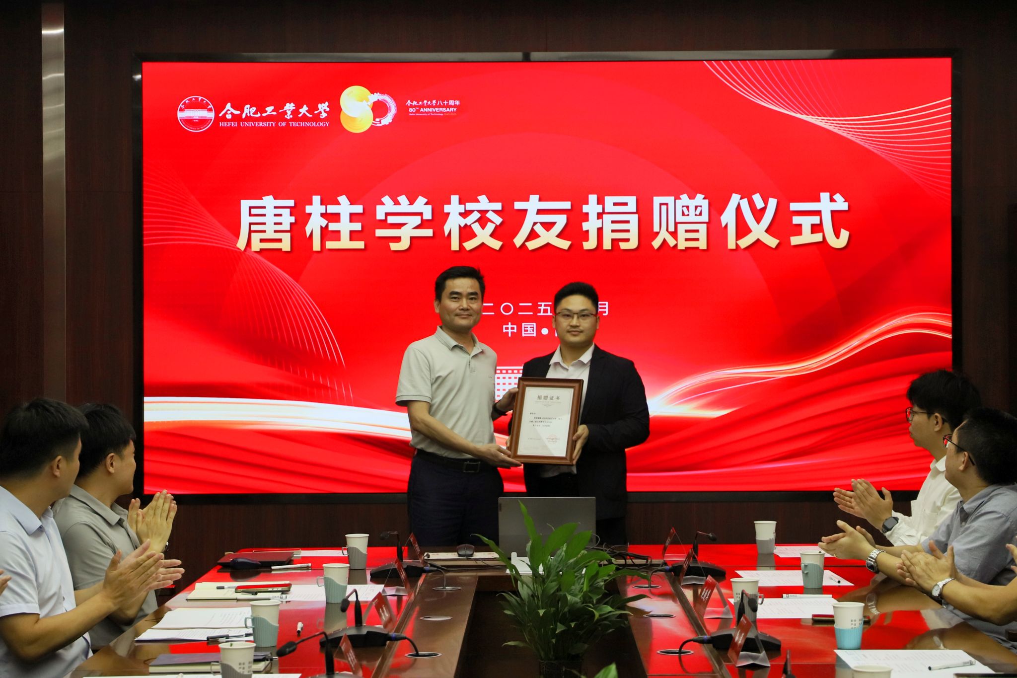 捐赠仪式上,严福平向陈永明颁发捐赠证书,对唐柱学校友慷慨捐资,支持与回馈母校的善举表示衷心感谢。他指出,唐柱学校友在校期间积极参与优良院风与学风建设,毕业后持续引领行业革新与企业发展,作为汇川技术股份有限公司创始人之一,主导数字化转型项目,积极推动工业自动化及新能源领域产品和管理创新,展现出卓越的创新精神。严福平表示,唐柱学等杰出校友在学界业界做出突出贡献并反哺母校,生动诠释了“工业报国”的精神传承与工大学子情系母校的赤城之心,学校将妥善运用捐赠资金,持续联系校友、服务校友、成就校友,实现双向奔赴。