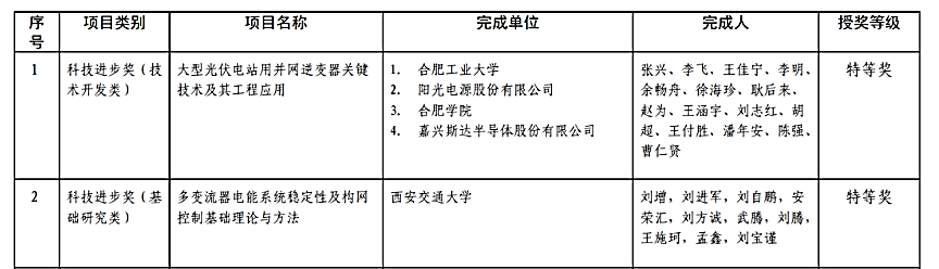 该获奖项目由beat365在线唯一官网联合阳光电源股份有限公司、合肥学院、嘉兴斯达半导体股份有限公司等单位紧密合作,历经十余年的科技攻关,突破了大型光伏电站用逆变器在并网稳定性与主动支撑、综合效率提升、高效国产化IGBT技术等方面的众多技术瓶颈。项目多项创新成果在阳光电源股份有限公司实现产业化,使其光伏逆变器全球市场占有率长期位居世界首位,相关技术国际领先,并取得了巨大的社会经济效益,引领了大型电站光伏逆变器技术及产业的发展,推动了高渗透率下大型光伏电站用并网逆变器的技术创新。
