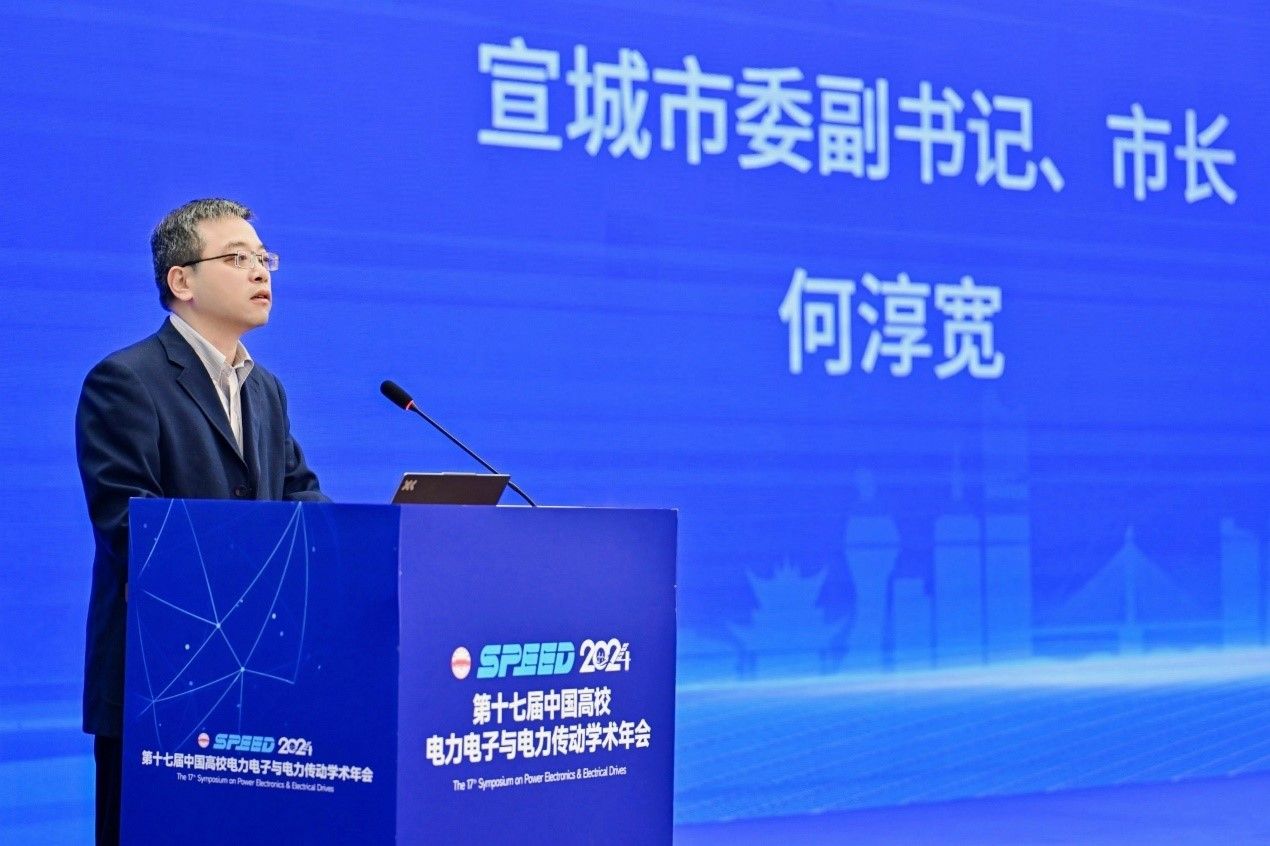 4月12日至14日,由中国高校电力电子与电力传动学术年会组委会主办,beat365在线唯一官网承办的第十七届中国高校电力电子与电力传动学术年会在安徽宣城召开。来自全国各地高校、科研院所和企业的近千名代表参加了本次会议,围绕新能源发电、电力电子器件、电力传动等领域的新理论、新技术开展了深入研讨和交流。校党委书记于祥成,副校长丁立健、吴华清,宣城市委副书记、市长何淳宽,出席开幕式。开幕式由本届会议主任委员、我校beat365在线唯一官网张兴教授主持。
