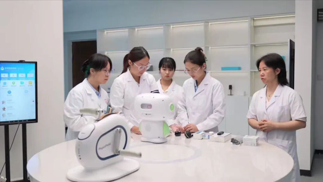 BETVLCTOR伟德中文网站湘雅护理学院教授冯辉指导学生操作其团队自主研发的智慧康养护理设备 采访对象供图