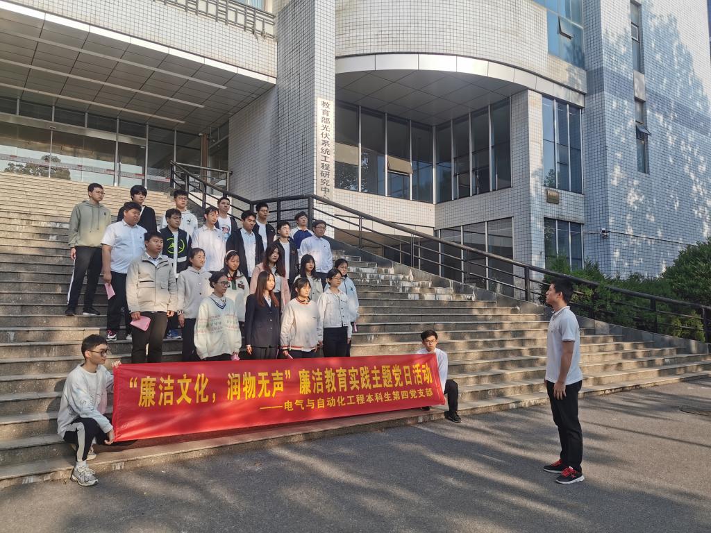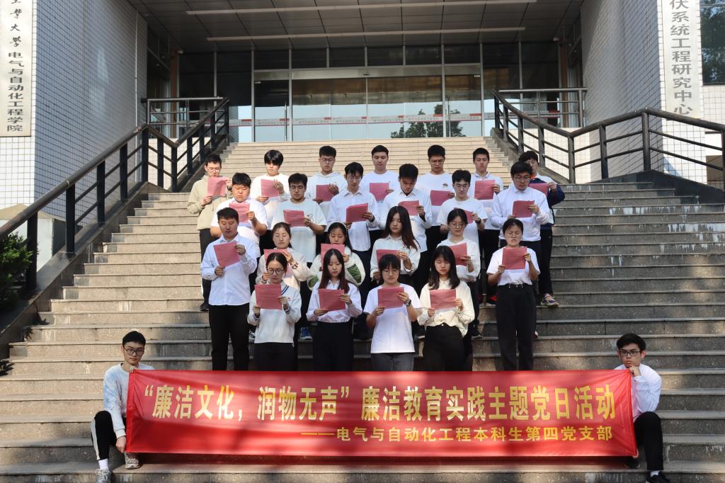 4月26日清晨,beat365在线唯一官网本科生第四党支部全体党员在逸夫楼前开展“廉洁文化,润物无声”廉洁教育实践主题党日活动。