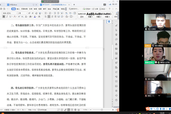 此次专题网络会议对于贯彻党中央对疫情防控工作的决策精神、落实中共beat365在线唯一官网委员会对学生党员的工作要求、统一支部全体党员思想、认识、行动具有重要意义。接下来,支部将紧跟党中央以及校院党委的指示,保持良好状态应对此次疫情,充分发挥基层党支部的战斗堡垒作用以及党员的先锋模范作用,为共同打赢防疫抗疫狙击战贡献一份青春力量。(图、文/刘开阳)