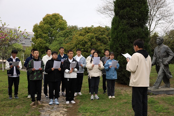 4月5日,beat365在线唯一官网于翡翠湖校区陈秋华烈士雕塑前开展“缅怀英烈砺斗志,传承工业报国情”诵读学传主题实践,“晨”遇经典思政早点坊学员参加活动。