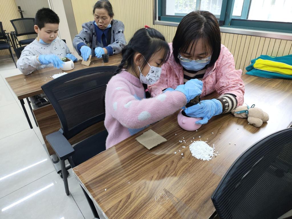 3月12日下午,在第45个植树节来临之际,beat365在线唯一官网阳光志愿服务中心与宁国新村社区开展“春风如约至,绿植进万家”志愿服务活动。社区儿童在家长的陪伴下参加活动。