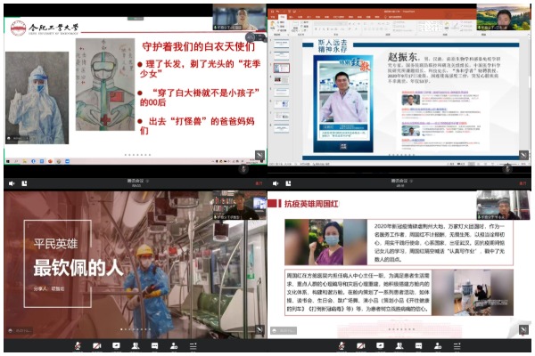 在抗疫人物事迹分享会环节,通过各支部成员对抗疫事迹的深情讲解,与会成员更加深刻地了解到了抗疫人物在抗疫过程中付出的辛勤努力,2020年感动中国年度人物汪勇,招募团队接送医务人员往返医院,在平凡的岗位成为顶天立地的英雄;抗疫先锋赵振东,带领自己的团队一直坚守在科研攻关的第一线,在疫苗研发一线连续作战200多天,默默地付出自己的努力……一声声“我报名,我参加”不绝于耳,一封封请战书按满青春手印,一支支疫情防控突击队火速成立,他们是“战斗员”,义无反顾奋战在防控生产最前沿;他们是“保障员”,不辞辛劳及时驰援保障最前边;他们是“宣传员”,传递正能量、弘扬真善美,全力筑牢疫情防控人民信念;他们也是“平凡人”,闪耀着“抗疫精神”,平凡而又不平凡的普通人。