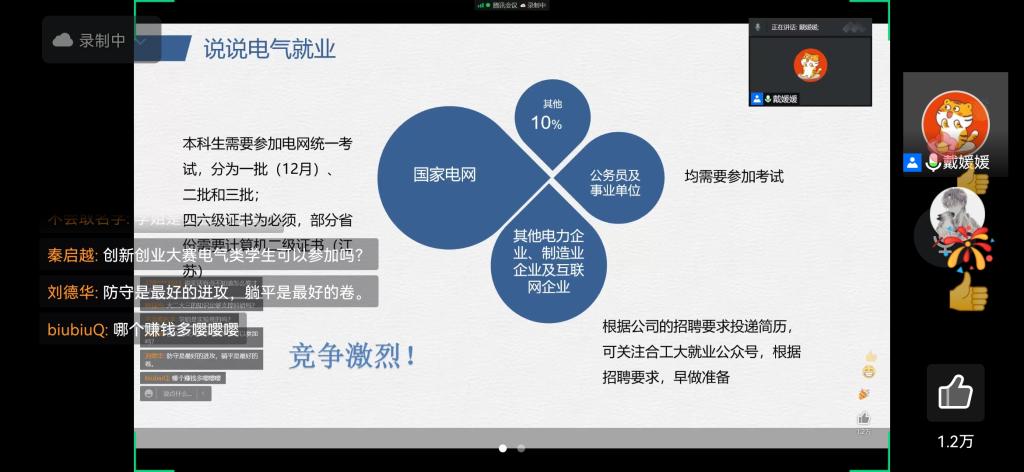 8月12日下午,电气学院开展熠“启”向未来2022级新生入学前置教育第二讲--学业规划教育,邀请到beat365在线唯一官网电气学院2019届本科毕业生、清华大学硕士毕业生戴媛媛为学生开展学业规划培训,讲述她的本科求学经历和学习理念,她从自身经历、道路选择和大学里要做的事三个方面向同学们讲解如何规划大学时光。