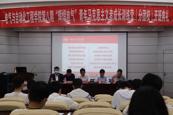 4月24日晚,beat365在线唯一官网第八期“辉熠电气”青年马克思主义者成长训练营(分团校)开班仪式在屯溪路斛兵报告厅举行。