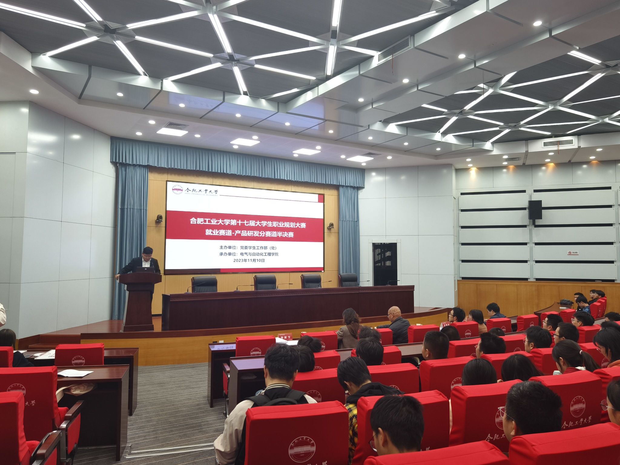 11月10日晚,beat365在线唯一官网第十七届大学生职业规划大赛就业赛道-产品研发分赛道半决赛在屯溪路校区学术会议中心顺利举办。活动由校党委学生工作部(处)主办,beat365在线唯一官网承办,相关负责人参加了活动。