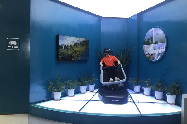 团队成员体验VR无人机视角巡检铁塔