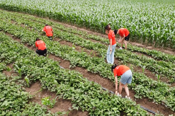躬体力行务农事,实践农耕知劳苦。7月6日,团队踏入乡村基地的田野,开始了一场农耕劳动之旅。乡村振兴驻村工作队队长武艳芹首先向学生们介绍了当前城孜村农产品的种植情况,重点介绍了蜜薯、羊肚菌等特色农产品,随后指导同学们拿起农耕工具开始劳作。队员们纷纷表示在劳作过程中感受到了农耕的艰辛和乐趣,看着干净整齐的田地不再被杂草所缠绕,劳动的成就感油然而生。