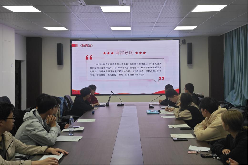 支部党员许亚晨领学《中华人民共和国爱国主义教育法》和《党史学习教育工作条例》,倡议党员以一流标准、一流态度、一流作风彰显榜样风采。全体党员深研体悟,纷纷表示要深刻领会爱国主义教育法的精神实质,认真学习爱国主义教育法的主要内容,增强做好爱国主义教育的使命感责任感,切实履行实施爱国主义教育的法定职责。党支部书记以“微光汇聚磅礴伟力”为题,结合两会精神、国家发展、青年榜样等为支部成员上了一堂党课,带领同学们感悟伟大建党精神,激发党员的爱国情怀,教育引导党员锚定强国有我,聚焦奋斗在我,为书写中国式现代化建设新篇章贡献德才兼备的青年朝气和先锋力量。