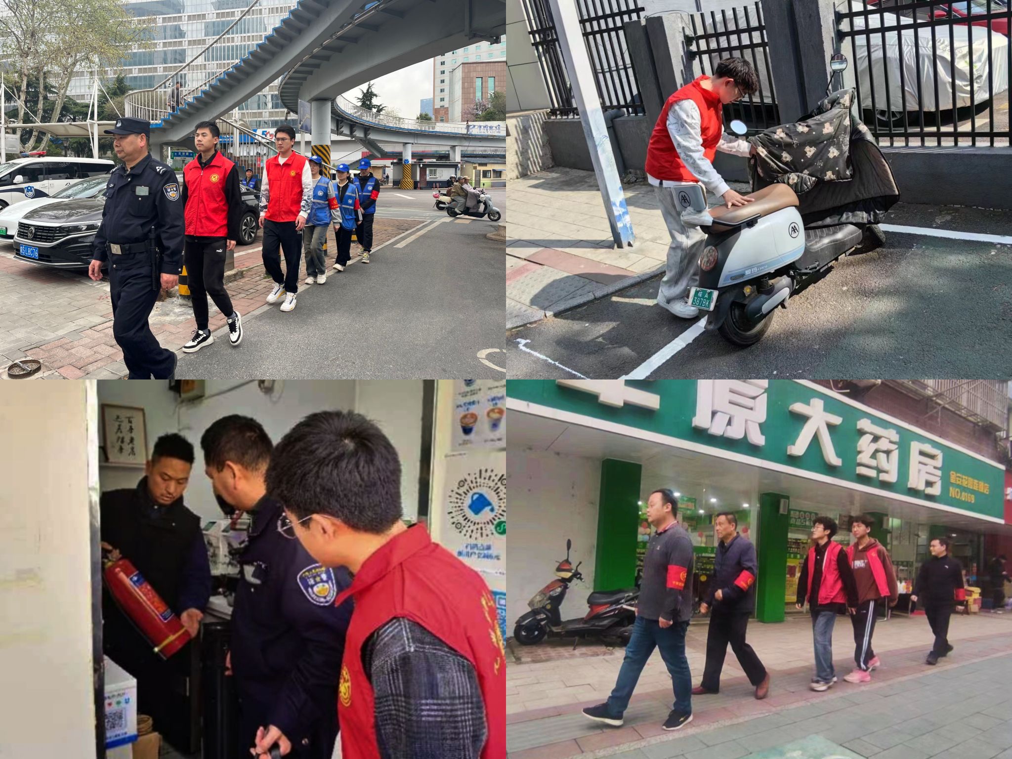 投身社区治理,筑牢安全防线。志愿者在工作人员的带领下,在社区张贴宣传海报、发放宣传资料,挨家挨户讲解电动车充电安全风险,讲解火灾逃生技能。实地走访检查社区消防设施、消防通道、飞线充电、线路老化等安全隐患,深入商铺查看灭火器、煤气罐等救火设备,为筑牢社区安全防线贡献青春力量。