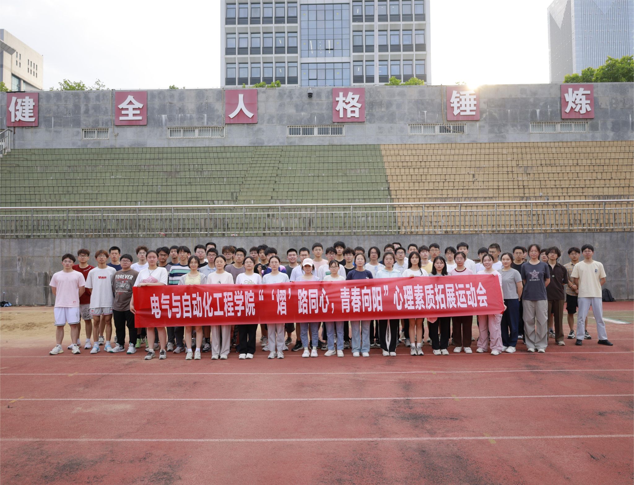 5月25日,beat365在线唯一官网在屯溪路校区足球场开展“‘熠’路同心,青春向阳”心理素质拓展运动会。学院相关负责老师,本研各年级组成的5支队伍共计100余名学生参加活动。