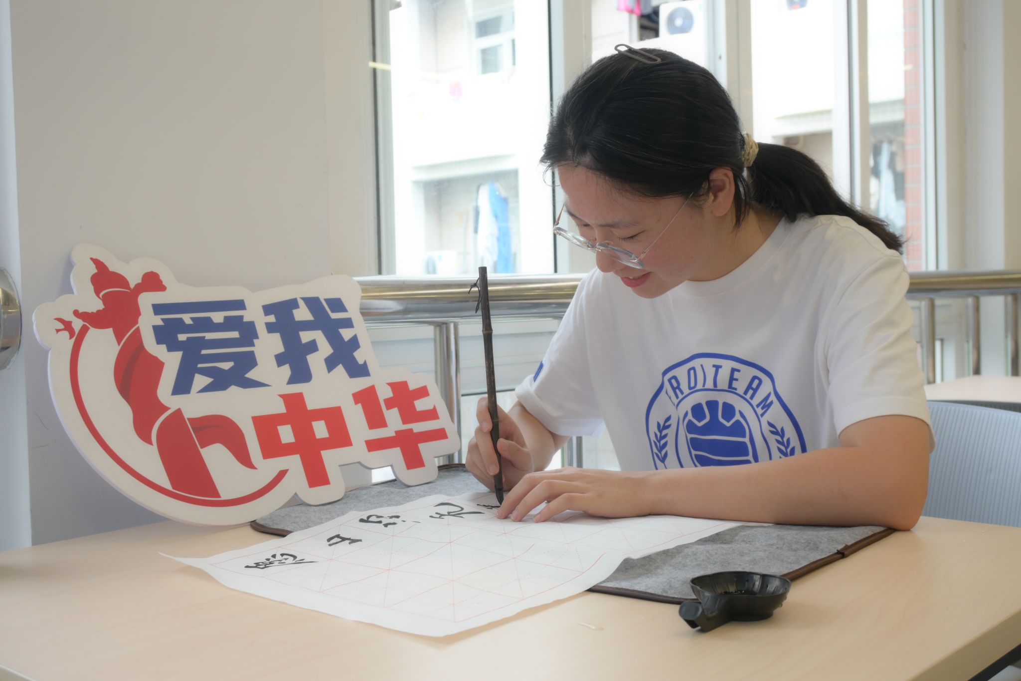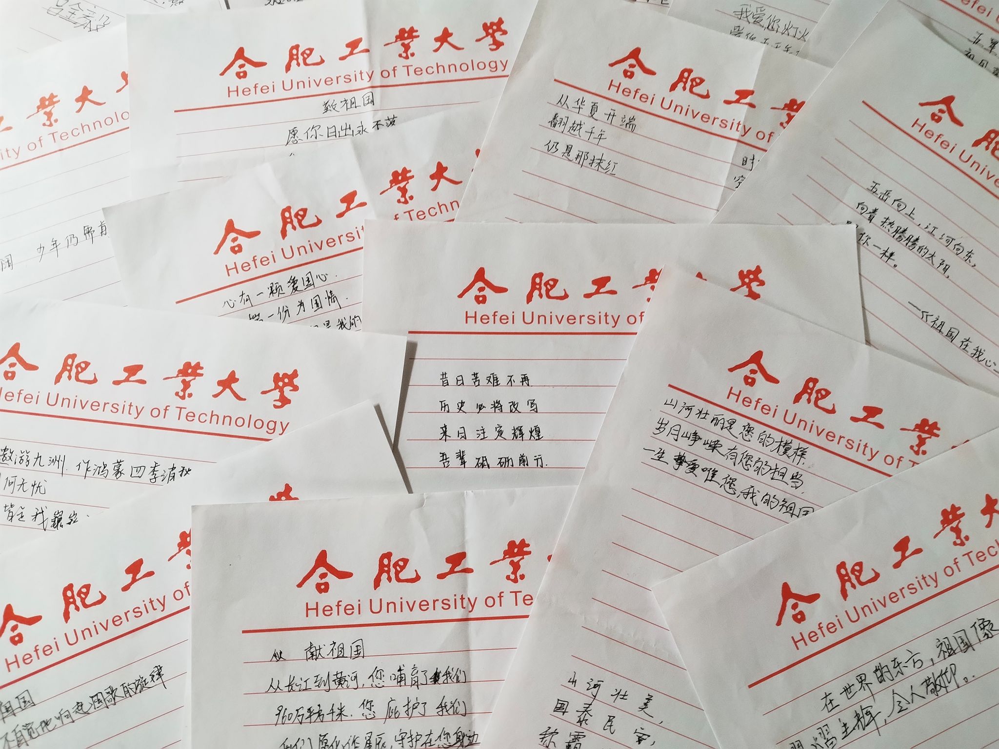 活动最后,电气工程及其自动化专业2023级1班牟涵笔力遒劲书写下“祖国母亲生日快乐”“愿山河无恙国泰民安,祝祖国母亲生日快乐”,一片其乐融融的氛围中,与会学生纷纷拿起笔,将自己对祖国清澈的爱和祝福写在三行情诗中,书写对祖国、母校的热爱与祝福。