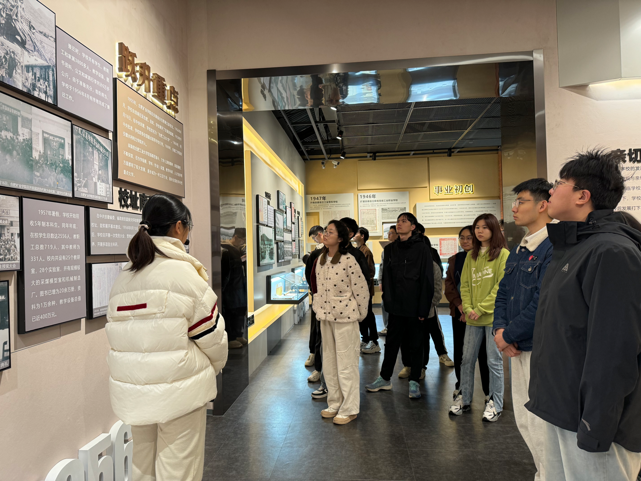 在展馆的讲解员的带领下,同学们认真聆听,驻足观赏,不时停下脚步与同伴互动讨论。参观过程中,同学们领略了学校长期以来坚持“工业报国”的优良校风,深刻理解到作为工大人的自豪与责任。展览馆内的众多展品,尤其是那些与国家重大科技项目相关的历史资料,让同学们更加强烈地意识到个人成长与学校、国家发展的紧密联系。