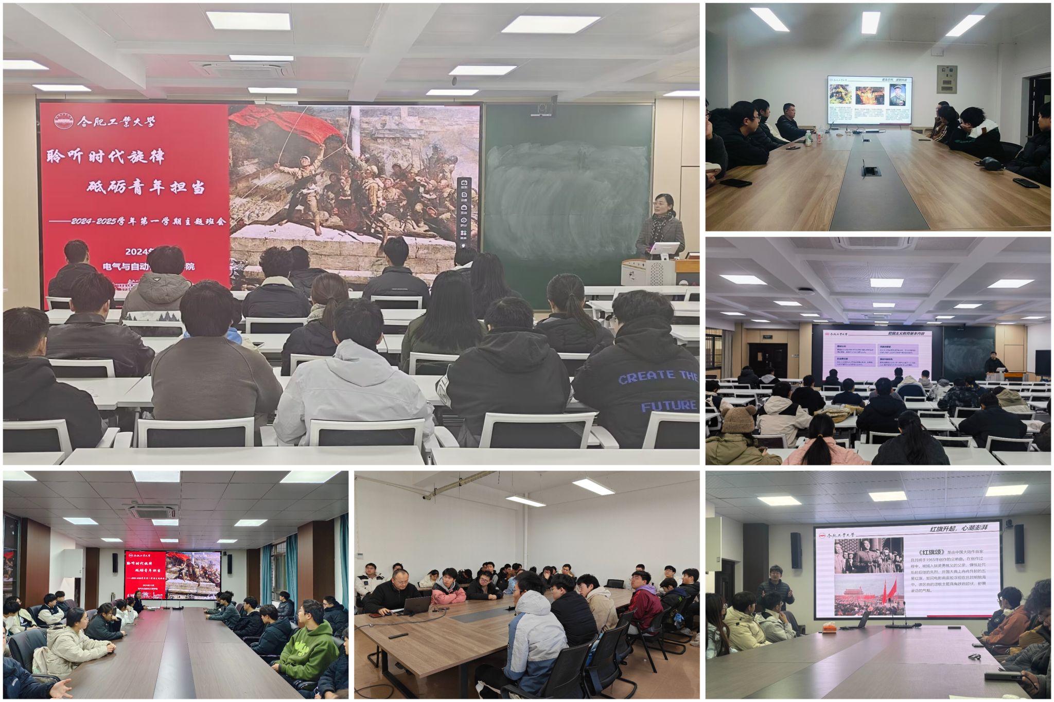本学期班主任主题班会以《聆听时代旋律,砥砺青年担当》为题,向同学们阐述了爱国主义的核心内涵和重要意义,爱国主义是中华民族精神的核心,是激励中国人民团结奋斗、自强不息的强大精神动力。班会在《我和我的祖国》《建国大业》《觉醒年代》等爱国影视作品的精彩片段中彰显爱国情怀和民族精神,在《义勇军进行曲》《我的祖国》等爱国歌曲的品析唱响中坚定对祖国的热爱和祝福,礼赞新中国成立75周年。通过回顾中国近代史上的重大事件和英雄人物的事迹,班主任老师引导同学们深刻认识到,是无数先辈的英勇奋斗和无私奉献,才换来了今天的和平与繁荣。从抗战时期八路军、新四军等抗日武装力量在敌后战场英勇抗击日寇的故事,到新中国成立初期,无数建设者为了国家富强、人民幸福而艰苦奋斗的感人事迹,老师们勉励与会同学要有坚定的理想信念、爱国情怀,要有“自讨苦吃”的精气神,要理想远大、信念坚定,为民族与国家发展鼓足后劲,稳固定力,厚植情怀、矢志报国,增强志气、锤炼骨气、厚植底气,让青春在为强国建设、民族复兴的不懈奋斗中绽放绚丽之花。