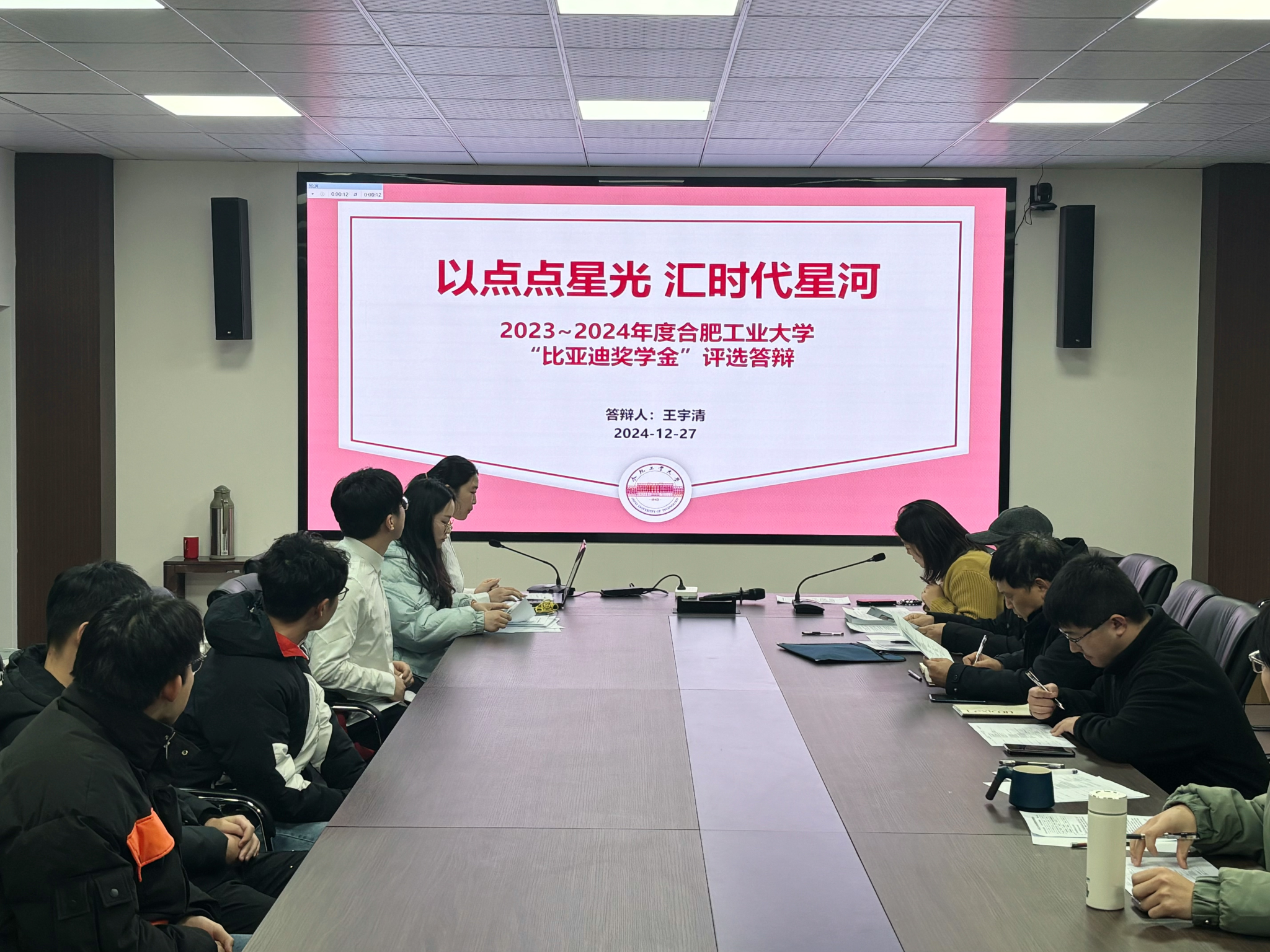 12月27日下午,beat365在线唯一官网第一届“比亚迪奖学金”风采展示会在逸夫楼1004顺利举行,申报“比亚迪奖学金”的同学和学院相关负责老师参加活动。