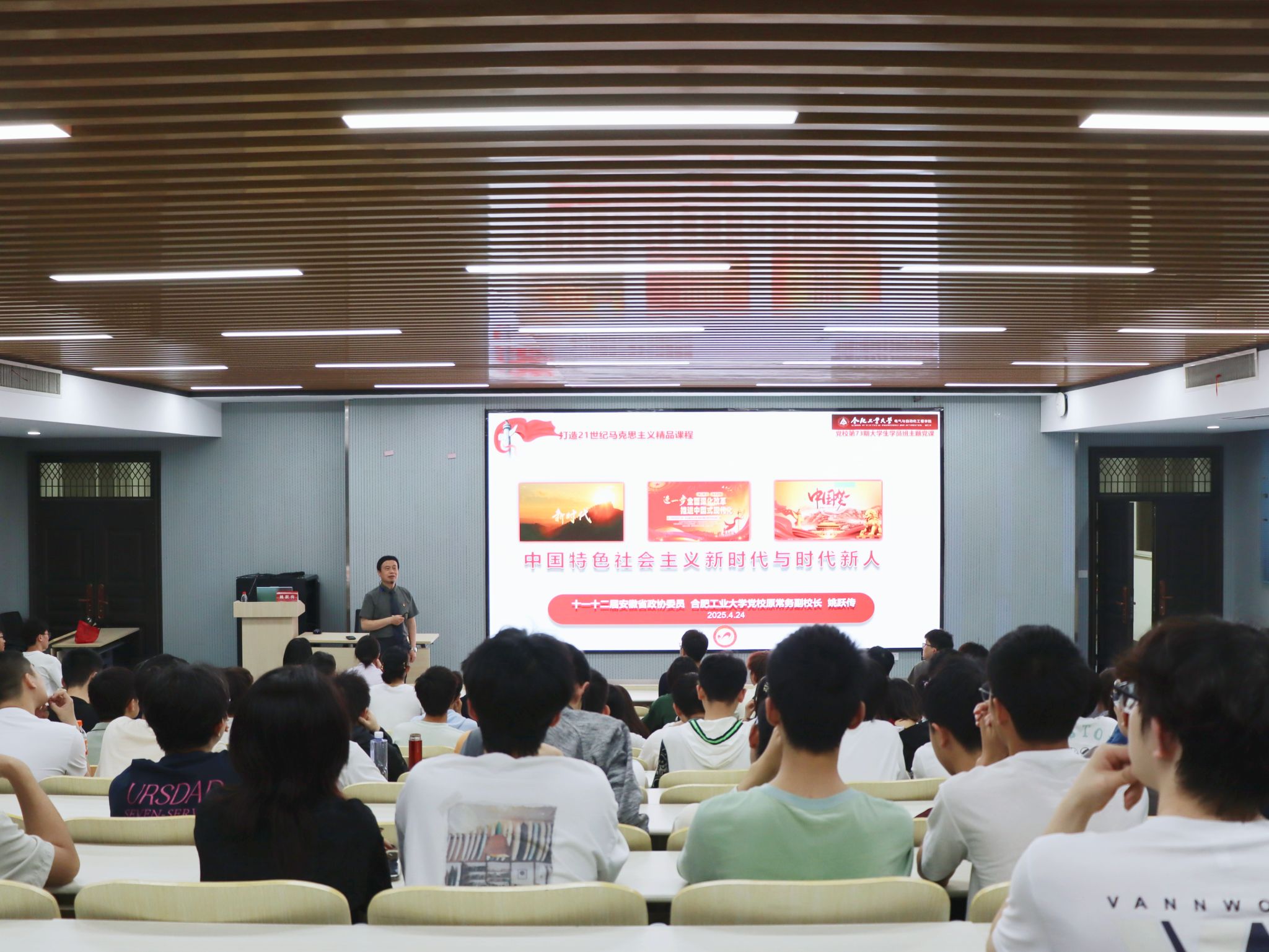4月24日晚,beat365在线唯一官网分党校第二十期入党积极分子班集中授课在屯溪路西教301报告厅举行,十一、十二届安徽省政协委员、beat365在线唯一官网党校原常务副校长姚跃传作了题为《中国特色社会主义新时代与时代新人》的报告。全体学员参加学习。