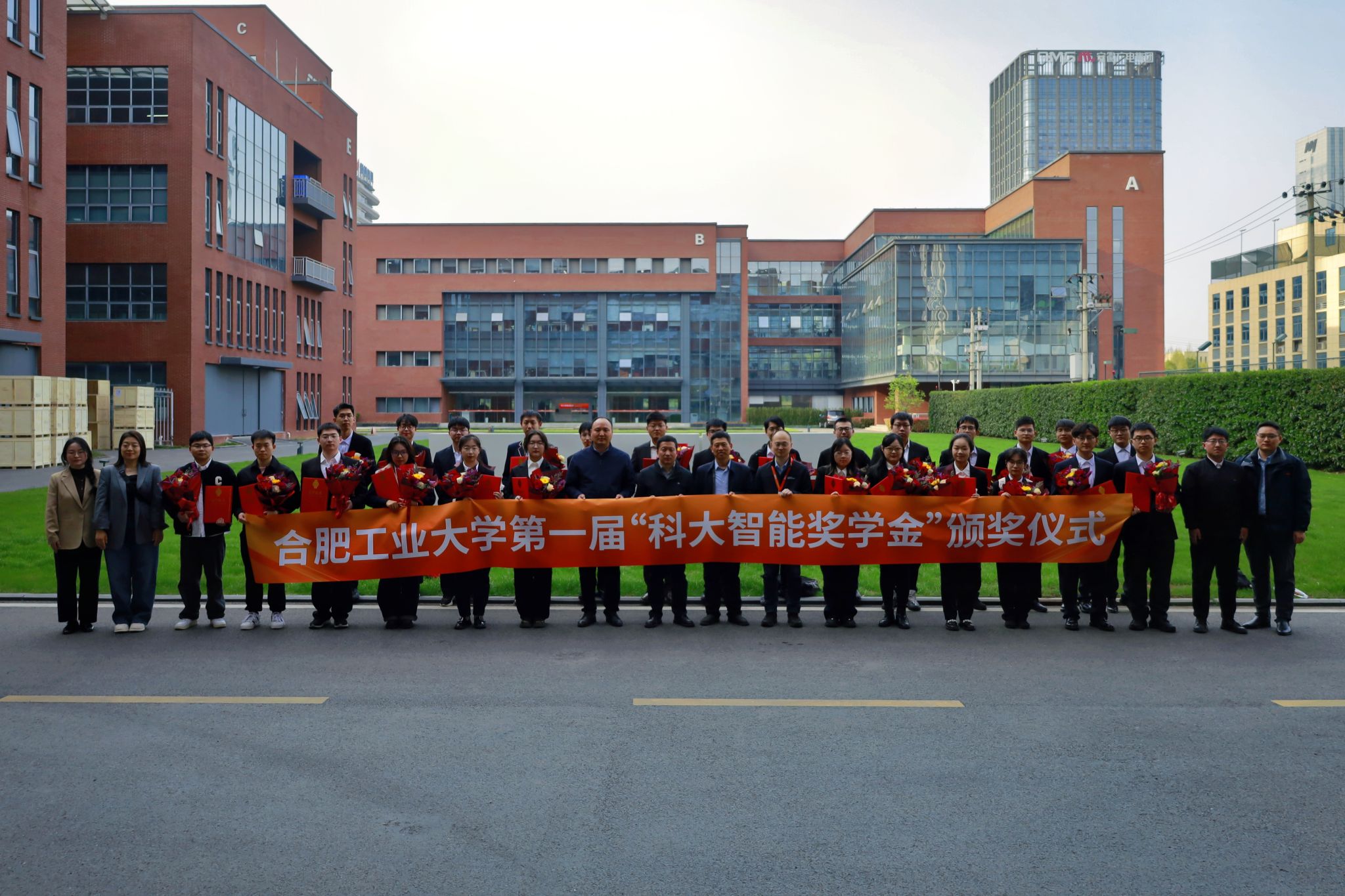 李志明向科大智能科技股份有限公司长期以来对学校的支持表示衷心感谢,并对获奖学生表示祝贺。他希望获奖学生带着回报企业、回报社会的社会责任感,带着发奋图强的事业心全面发展、有所作为。秦明辉对我校师生的到来表示热烈欢迎,向获奖学生表示祝贺。他希望通过奖学金的设立激励更多优秀学子投身电气领域的学习与研究,为未来行业的可持续发展贡献智慧和力量。施大顺宣读表彰决定。与会领导老师为27名获奖学生颁奖。