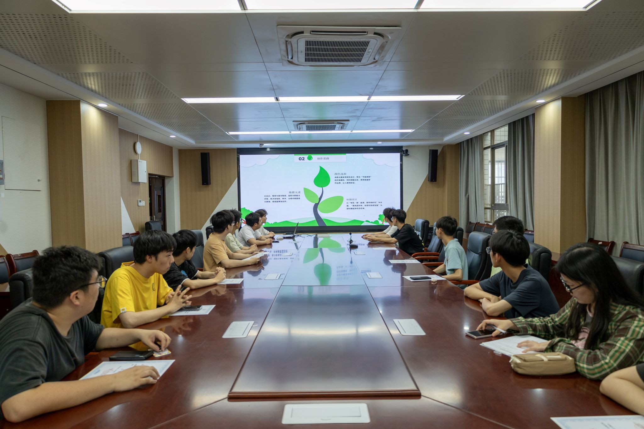 获奖学生代表马一朗分享了作品《绿色新能源,碳中和时代》的创作思路和元素结构,倡导同学们用创意记录环保实践,将艺术表达与绿色理念深度融合。学院相关负责老师对所有获奖同学表示祝贺,鼓励同学们坚定绿色信念,树立低碳志向,坚持创新目标,激发绿色动能,养成低碳习惯,提升生态素养。