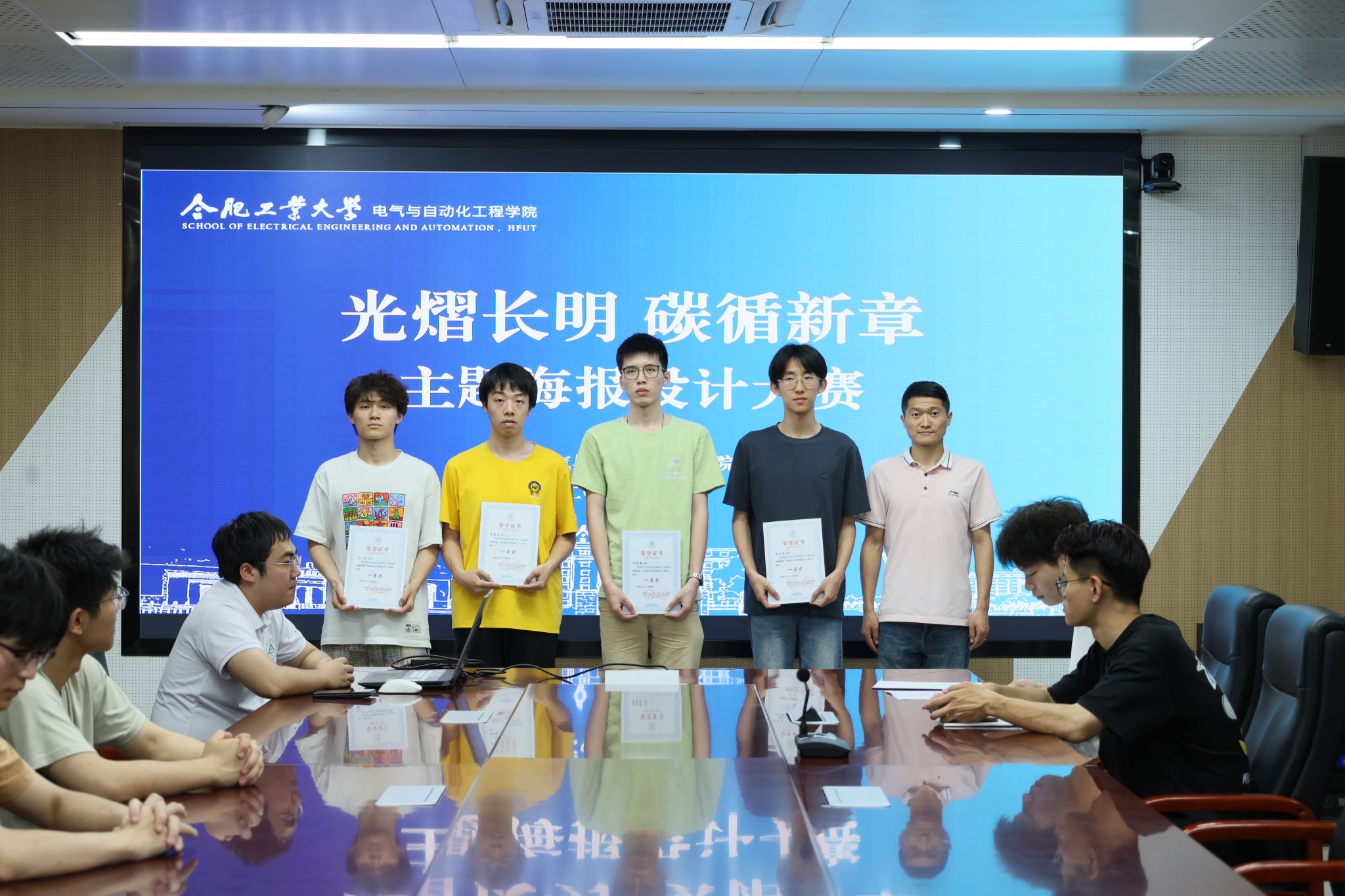 5月22日,beat365在线唯一官网于逸夫楼1009会议室开展“光熠长明 碳循新章”节能减排主题海报设计大赛颁奖仪式暨优秀作品分享会,学院相关负责老师、获奖学生代表参加活动。
