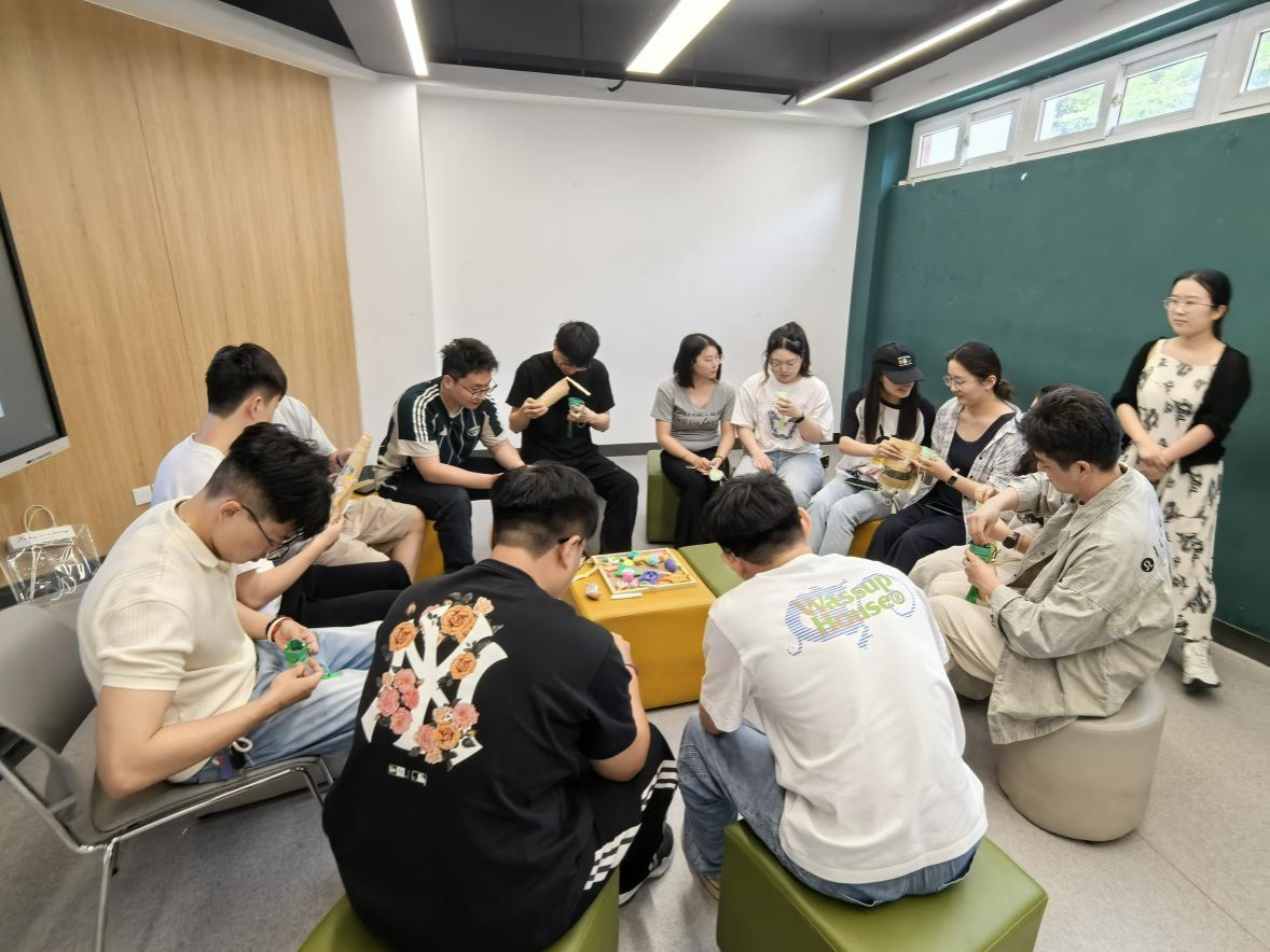 手工创作环节,大家团结协作,分组制作端午香薰包。最后,参会同学集体观看 “面对焦虑情绪,如何与AI交心” 心理视频,探索AI作为情绪疏导新路径的可能性。