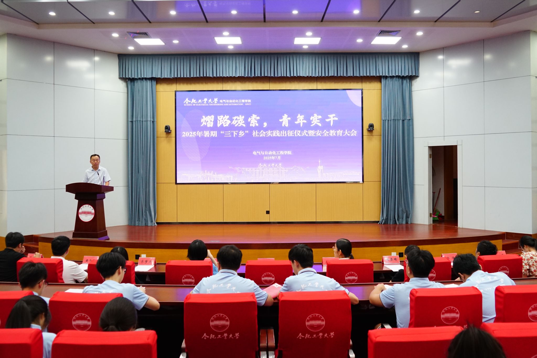 7月3日,beat365在线唯一官网“熠路碳索,青年实干”2025年暑期“三下乡”社会实践出征仪式暨安全教育大会在学术会议中心一楼报告厅举行,学院相关负责人、各实践团队指导教师及立项实践团队全体成员参加活动。