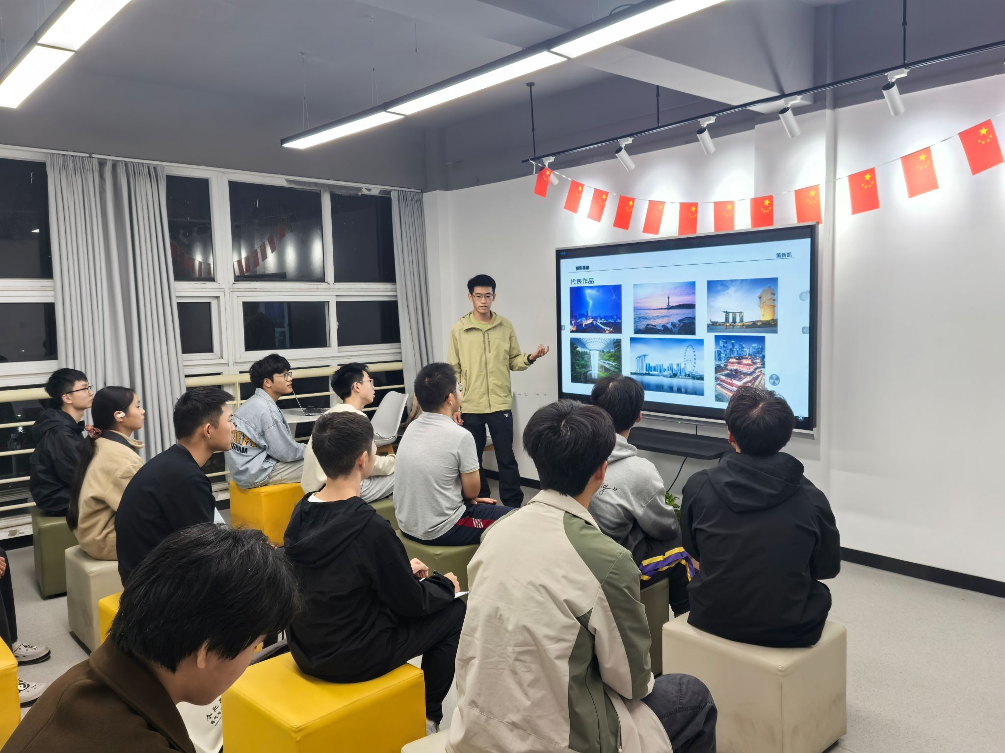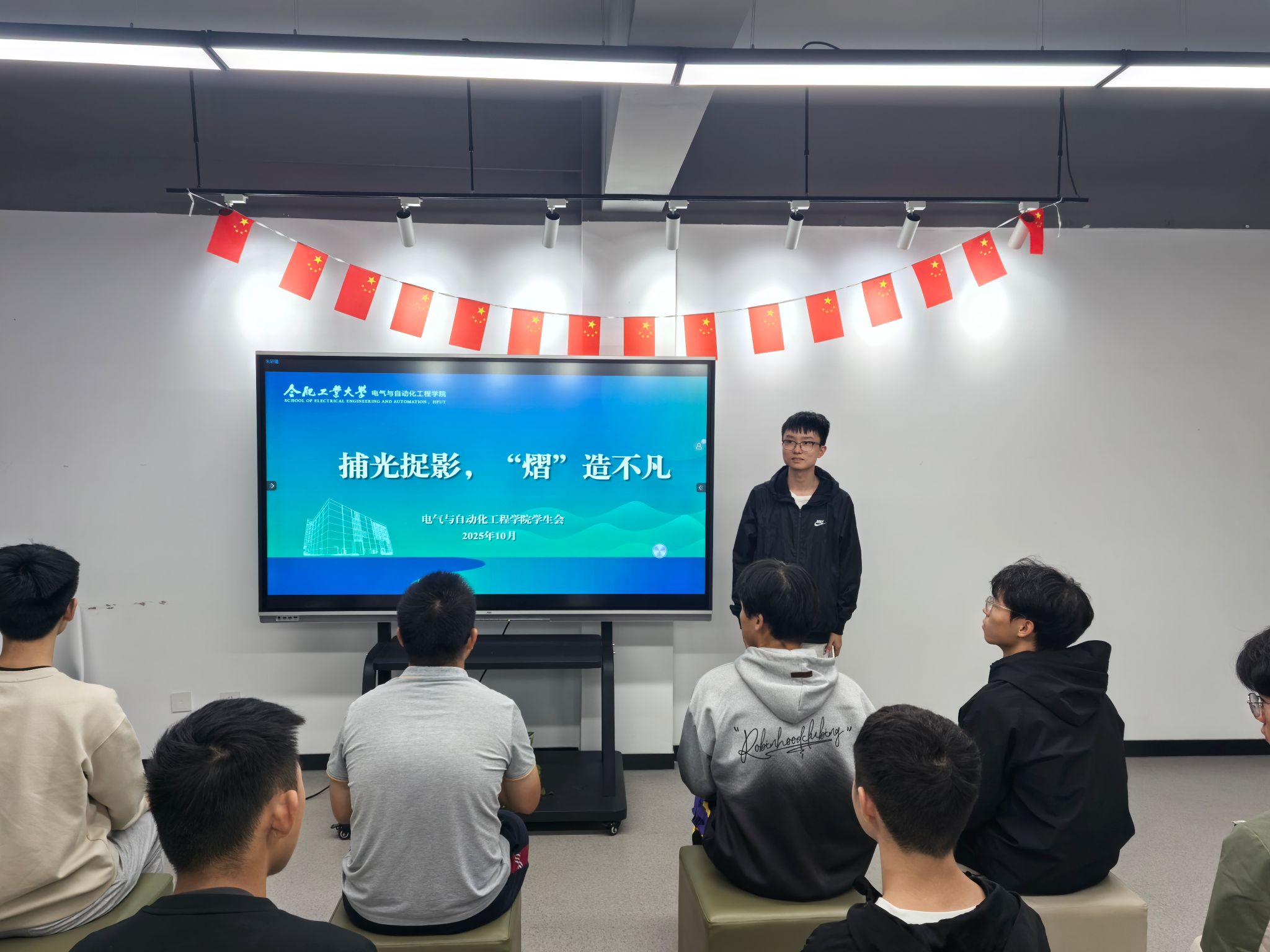 10月18日晚,beat365在线唯一官网于翡翠湖校区五号南楼学生沙龙社区开展“捕光捉影,‘熠’造不凡”摄影业务能力培训,面向2025级学生开展摄影教学。