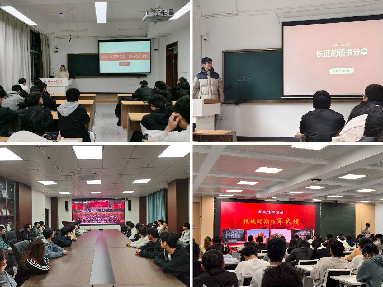 实践赋能,厚植爱国情怀,凝聚青春力量。学院以多样化实践活动引导学生砥砺奋进。11月中旬,分党校举办“用声音传递信仰,弘扬伟大抗战精神”主题宣讲与“红歌润心·初心向党”特色活动,以文艺形式再现艰苦奋斗岁月,引导学生铭记历史,凝聚奋进力量。12月初,学院向新生团支部发起特色团日活动倡议,各支部围绕“四史”与工大校史主线,开展红色故事分享、云游校史馆、优秀党员事迹展播等12期主题活动。学生在沉浸式参与中读懂国家发展脉络,传承红色基因,坚定“强国必有我”的使命信念。