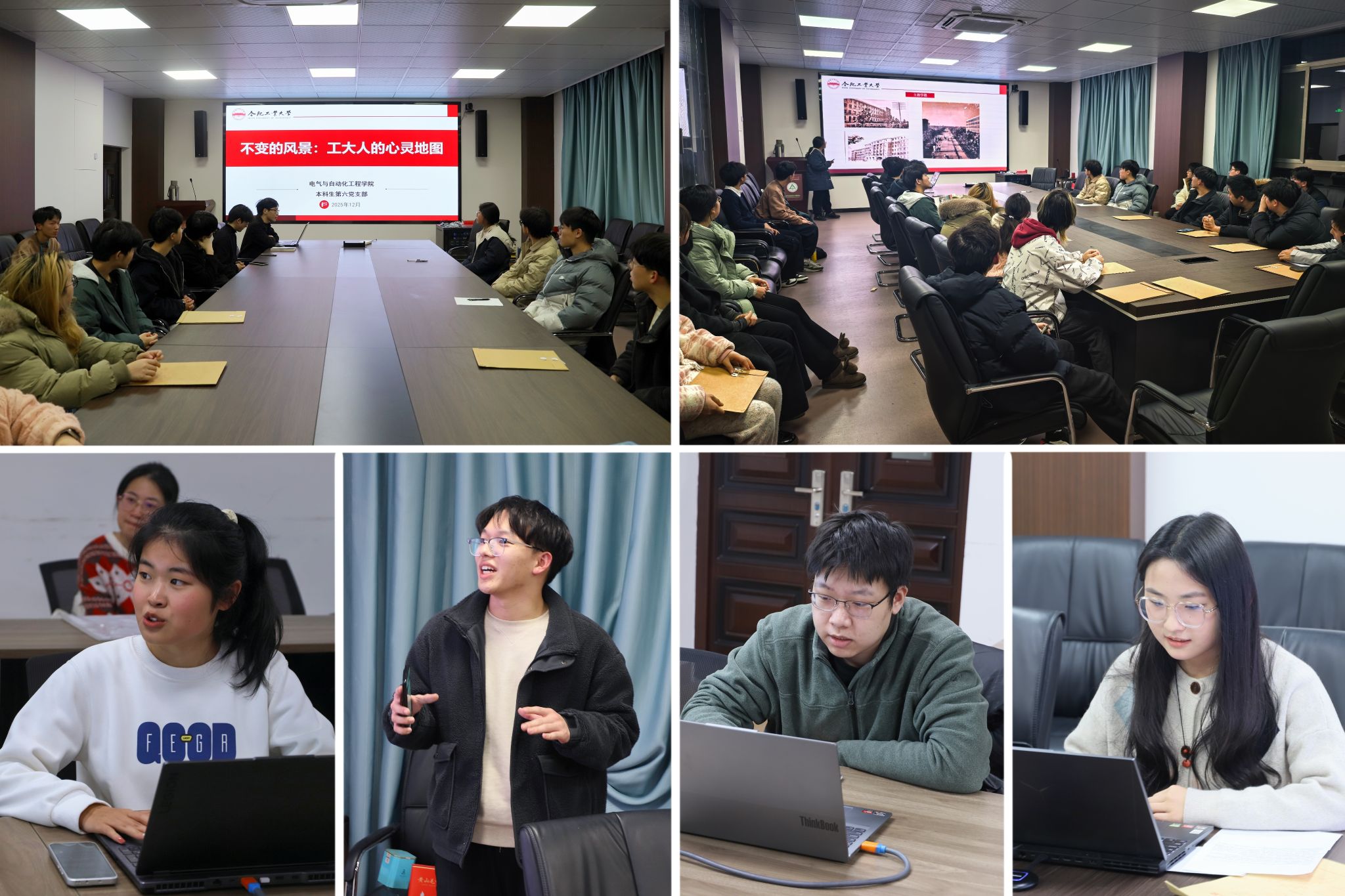 张然、赵海升、刘一硕、侯凯文、蔡建玉5名学生代表以《时光印记——工大老照片的故事》一书为载体,分别围绕校园历史建筑、工大校址变迁、校区地标风物、大国重器研究等内容,对相关图片影像进行解读展示,并结合老照片对校园文化分享了个人见解。学院相关负责教师表示,今年适逢学校成立80周年,希望全体学子细致品读老照片背后的校史故事,深刻感悟学校在一代代工大人努力下走过的八秩征程,将“工业报国”精神融入今后学习生活的各个环节。