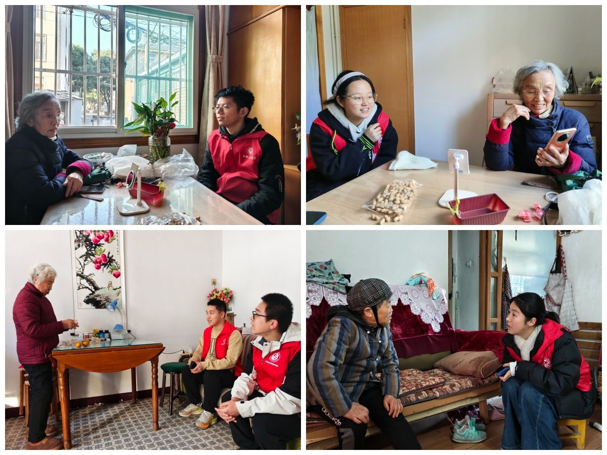 学院阳光志愿服务中心志愿者分两组开展社区敬老探访活动。第一组走访宗云瑛奶奶家,恰逢老人运动归来,志愿者与老人交流日常作息情况,了解到80多岁的她仍能熟练操作电脑,老人还分享了重孙女的视频与儿孙近况,满溢着四世同堂的幸福感。第二组在社区楼下偶遇陆腊梅奶奶,彼时老人刚为邻里分享完儿子从深圳寄来的新鲜橘子,她向志愿者讲述了孙女的大学求学经历,坦言自身每日坚持散步锻炼。志愿者贴心叮嘱老人近日降温注意添衣,以暖心陪伴为老人送去关怀。