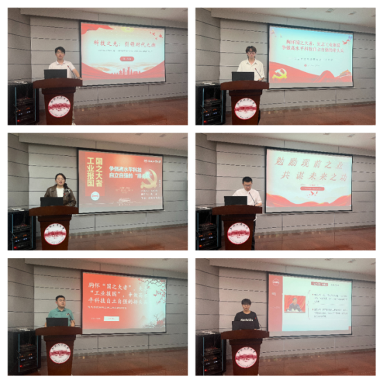 本次主题学习研讨分为分组研讨和交流展示两个环节,班主任将发展对象班学员分为7个小组,各研讨小组集中观看了科技创新相关主题的视频资料,围绕“何为国之大者”、“如何成为高素质科技人才”等相关问题进行了交流学习。通过学习,学员们对“工业报国”的内涵有了更深层次的理解,激励全体学员扎实专业基础,勇于开拓创新,投身科技建设,做有理想、敢担当、能吃苦、肯奋斗的新时代青年。交流展示环节,各小组代表依次展示了组内学员讨论的成果和感悟,共同学习了国家在科技创新领域取得的巨大成就,列举了胸怀工业报国之志,投身于国家科技事业的榜样事迹,分享了参与科创项目及社会实践过程中对国家科技事业飞速发展的感受。同学们纷纷表示,将努力学习专业知识,积极参与科研项目,不断提升实践能力和创新意识。投身社会实践,了解社会发展需求,将所学知识用于解决实际问题,为国家和社会的发展贡献自己的力量。