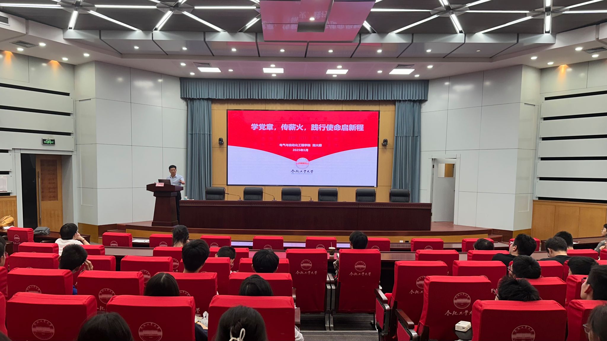 5月22日晚,beat365在线唯一官网分党校第二十期入党积极分子班集中授课在屯溪路校区学术会议中心一楼大报告厅,学院副处级组织员施大顺讲授主题党课。